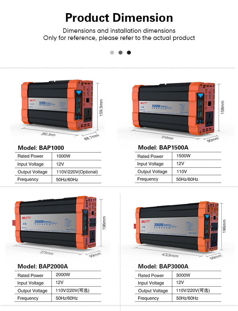 3000W pure sine wave inverter BAP3000 The product has the following characteristics: